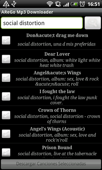 AReGo Mp3 Downloader es capaz de descargar varias canciones a la vez y guardarlas en la tarjeta de memoria o donde tú le indiques.